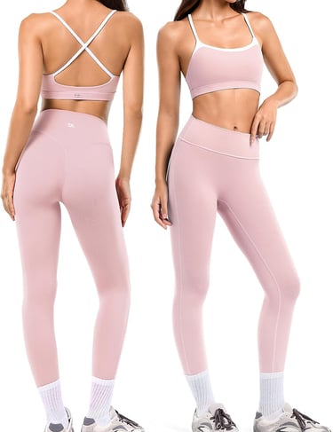 Soft pastel workout sets are perfect if you love a feminine Pilates aesthetic. A matching sports bra and leggings or shorts in shades like blush pink, sage green, or baby blue creates a fresh studio look that feels both stylish and effortless.