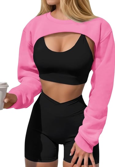 You can go for a slightly baggier, cozier shrug or choose a more streamlined, fitted style depending on the vibe you’re going for. Either way, these little layers instantly make a basic sports bra and leggings set feel more styled. Honestly, nothing screams sporty chic quite like a cute Pilates shrug.