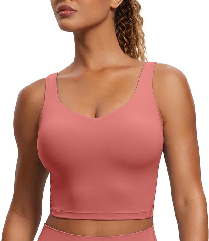 I especially love this Lululemon dupe from CRZ Yoga that I’m sharing below. Their tanks are super flattering and come in a wide variety of necklines and lengths, so you can easily find a style that fits exactly what you’re looking for.