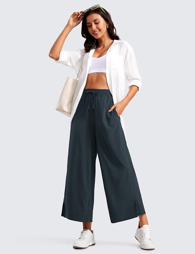 Wide-leg athleisure pants bring a different silhouette into your wardrobe that feels relaxed yet elevated. You can choose a cropped style for a more modern, laid-back look or a longer, flowy version depending on your preference.