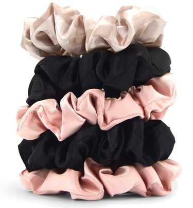 A soft, neutral scrunchy keeps your hair in place while feeling more intentional than a basic hair tie—adding a subtle, cohesive finish that pulls the entire look together. This is your Finish.